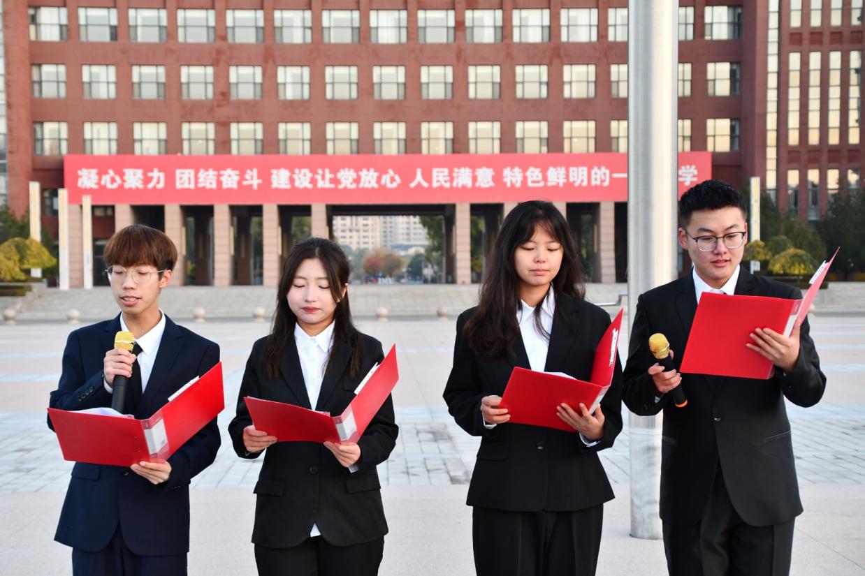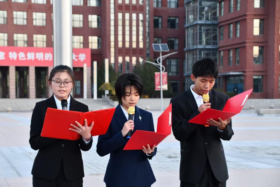 升旗仪式结束后,来自2024级行政管理专业的肖甜甜同学、2024级政治学与行政学专业的肖怀钰、秦艺格、汤嘉兴同学进行国旗下的演讲——《祖国颂》。四位同学充满激情的朗诵,每一句都饱含着对祖国的热爱与赞美,同时也激励着我们继续前行。