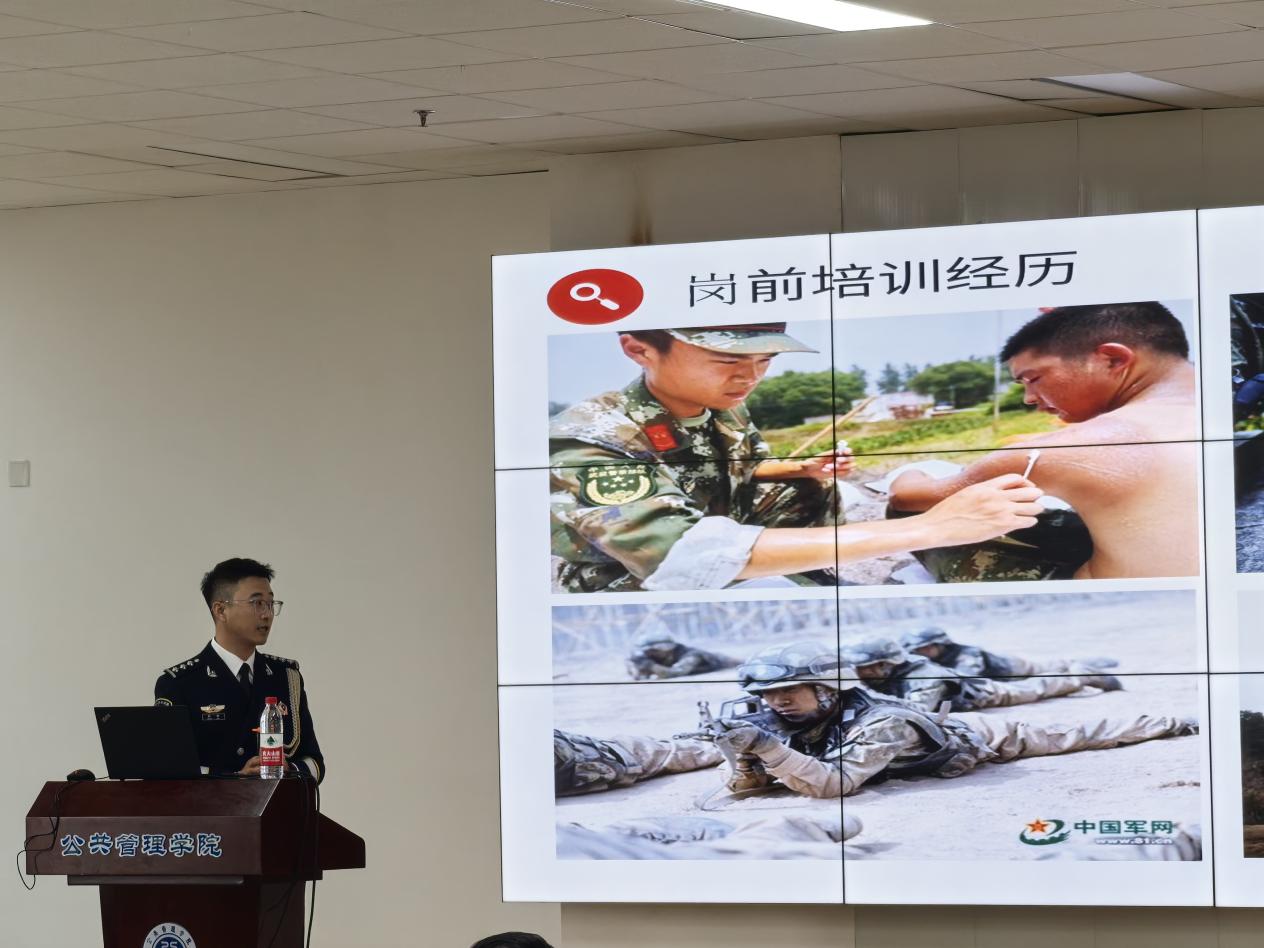 随后,张辉分享了他近十年的基层工作经历,宣讲会展示的一张张照片都是他工作训练的缩影。在严苛训练中,他深刻领悟到了在基层工作中必须具备坚毅的品质。他还向同学们介绍了自己工作过的地方,讲述了基层生活的艰难困苦,并通过一段视频,分享了算井子基层干部服务群众的感人事迹,讲述他自己与算井子的不解之缘,在那里他与群众们相互扶持、守望相助。他用自身经历向同学们践行了“奋斗的青春最美丽”,这场宣讲会让同学们深切感受到了基层工作的价值与意义,激励着同学们在未来的道路上不畏艰难,勇敢奋斗。