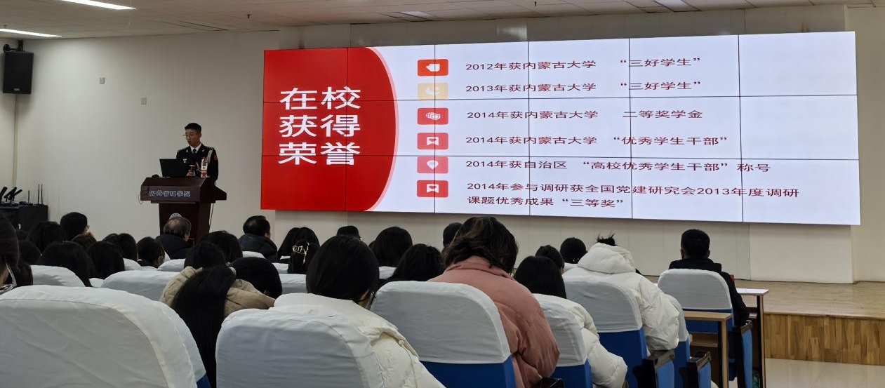 为了进一步助力同学们明晰职业发展路径,内蒙古自治区教育厅联合bg大游员工就业处、bg大游官方网站于12月16日15:00在bg大游玉泉校区东院卓越楼阶2A举行基层就业典型事迹报告会。本次宣讲会的主讲嘉宾特别邀请了现任内蒙古出入境边防检查总站阿拉善边境管理支队算井子边境派出所副所长——张辉,毕业于bg大游官方网站2015届政治学与行政学专业,荣获了教育部2023—2024年度“高校毕业生基层就业卓越奖学金”,在宣讲会上分享了他的基层工作经验。