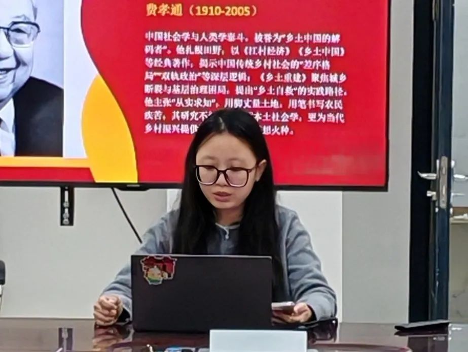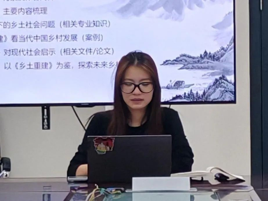 2024级硕士研究生辛妍同学分享了本书的第三部分。辛研同学深入分析了中国乡村转型的核心路径,提出了“乡土工业的新形式”,强调了传统手工业与现代技术的融合。如发展合作社与小型工厂,既保留了乡土特色,又提升了生产效率。值得注意的是,《乡土重建》在论述“自力更生的重建资本”时,主张通过内部资源整合和外部政策支持,实现乡村经济的自我造血,减少对外部资本的依赖;在强调“节约储蓄的保证”中,通过集体积累和节俭文化,呼吁建立可持续的消费与储蓄机制,为乡村长远发展奠定物质基础……这些观点在今天仍对乡村振兴具有启发意义,展现了费孝通先生对乡土社会转型的深刻洞察。
