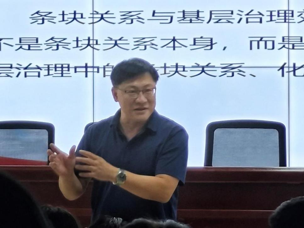 周振超教授以“条块关系视域下基层政府负担繁重的成因与治理对策”为主题,以条块关系为切入点,重点讲述了条块关系影响基层政府负担的逻辑理路和条块关系对减轻基层政府负担的对策与思考。