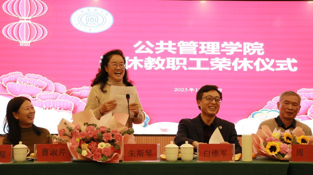 两位在岗教师李慧勇、宋向嵘先后发言,他们回顾了与三位老教师相处的点点滴滴,语言幽默风趣又情真意切,表达了全院在岗教师对三位退休教师的尊敬与爱戴之情。