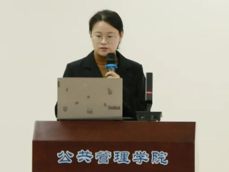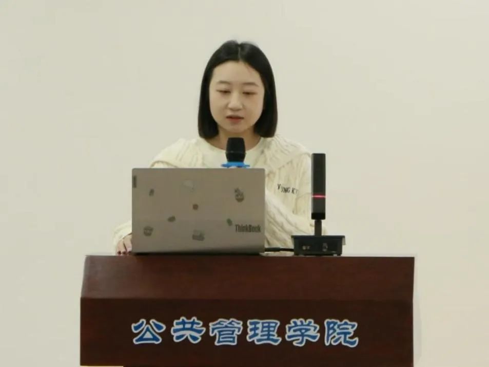 针翔宇同学作了题为《我国养老服务自主知识体系的构建》的报告。针同学强调我国养老服务自主知识体系的构建有着鲜明的理论、历史及现实逻辑。她指出,学术自主是构建我国养老服务自主知识体系的核心问题,须加以关注。并提出构建我国养老服务体系的对策建议,旨在推动实现养老服务实现高质量发展。