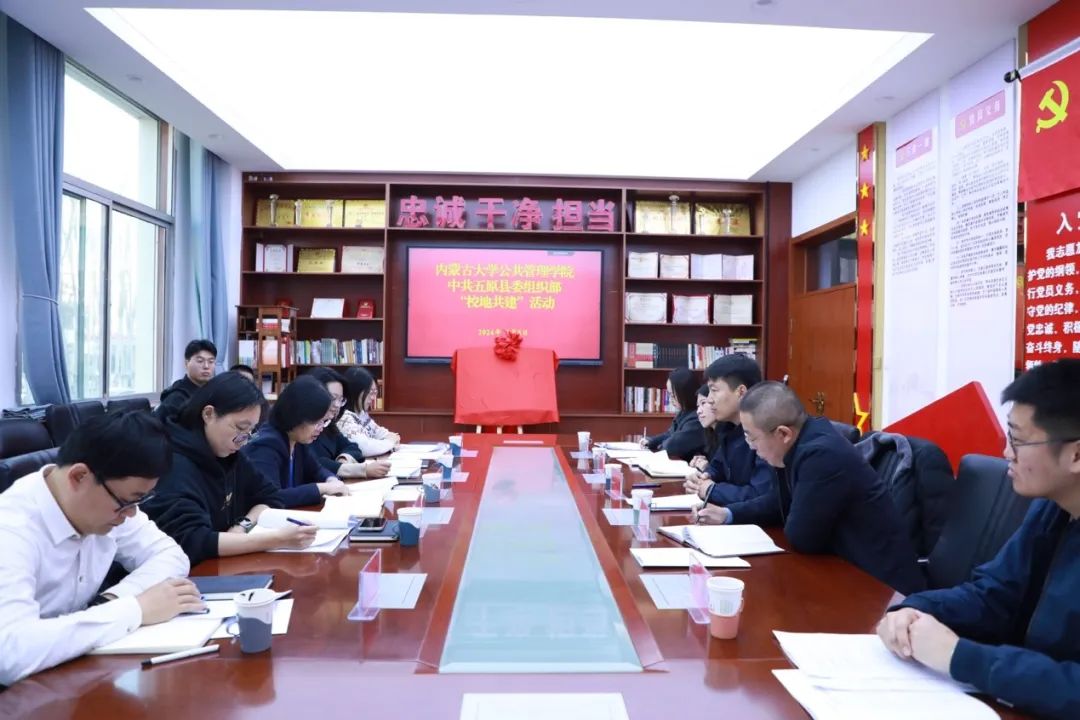 12月5日上午,bg大游官方网站与五原县委组织部共建人才交流科研实训基地揭牌暨校地合作签约仪式在巴彦淖尔市五原县隆重举行。签约揭牌仪式由五原县委组织部副部长靳威主持。五原县委组织部部长乌云达赖,组织部常务副部长闫威武,组织部部务委员、县委党校常务副董事长张慧,老干部服务中心主任、县委组织部人才工作与政策研究室负责人杨蕾,bg大游官方网站副经理那岚业,行政管理学系主任宋向嵘,学工办主任宋学莹,行政管理学系教师姜雅婷副教授、刘成副教授出席仪式。