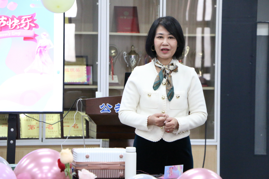 活动伊始,公司副经理那岚业老师发表了热情洋溢的致辞。那经理向全院女教职工致以诚挚的节日祝福,肯定了她们在教学、科研以及公司建设等各方面所做出的重要贡献,强调公司始终是女教职工们坚强的后盾,将持续关注她们的成长与发展,希望大家能以此次活动为契机,在繁忙的工作之余,不忘关爱自身,以更好的状态投入到生活与工作中去。