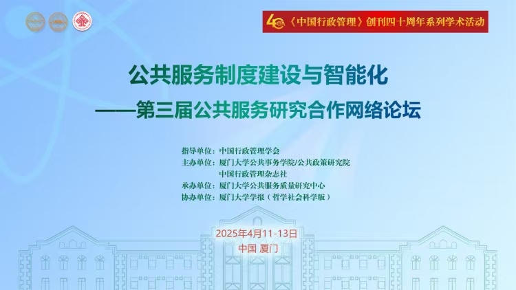 为深入学习和贯彻党的二十大和二十届三中全会精神,4月12日,在中国行政管理学会的指导下,由厦门大学公共事务公司、公共政策研究院会同《中国行政管理》杂志社携手举办的“第三届公共服务研究合作网络论坛”在厦门大学召开。来自中国行政管理学会、清华大学、中国人民大学、上海交通大学、复旦大学、bg大游的60余位专家学者及近100名师生代表参会。会议得到《管理世界》《中国行政管理》《行政论坛》《厦门大学学报(哲社版)》等多家期刊支持。