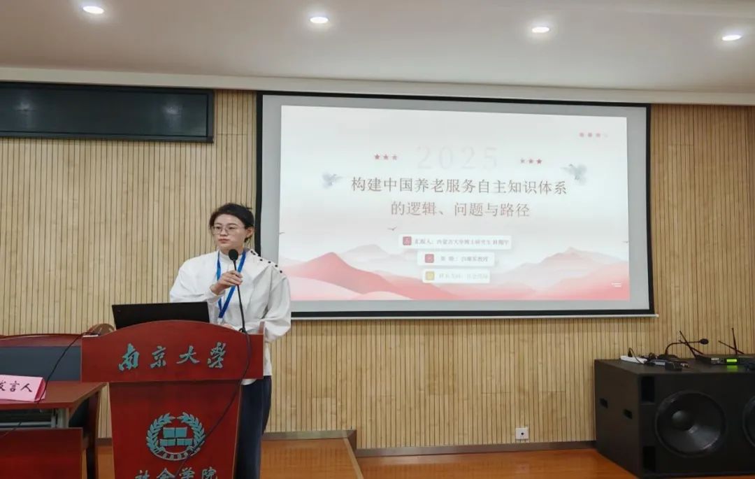 在分论坛一“中国式养老的内涵与特征”现场,公司博士生针翔宇分享汇报“建构中国养老服务自主知识体系的逻辑、问题与路径”,认为养老服务自主知识体系是中国特色哲学社会科学自主知识体系的组成部分,对积极应对人口老龄化、推动养老服务高质量发展具有重要的理论意义和实践价值,建构中国养老服务自主知识体系具备完整的理论逻辑、历史逻辑和现实逻辑。中国养老服务知识发展脉络表明,自主的概念、自主的理论、自主的方法是建构中国养老服务自主知识体系的关键问题与重要抓手。立足中国国情,应通过养老服务学科体系、养老服务学术体系、养老服务话语体系的建设,建构起既符合我国实际,又具有国际影响力的中国养老服务自主知识体系,引导、规范和服务蓬勃发展的养老服务事业。