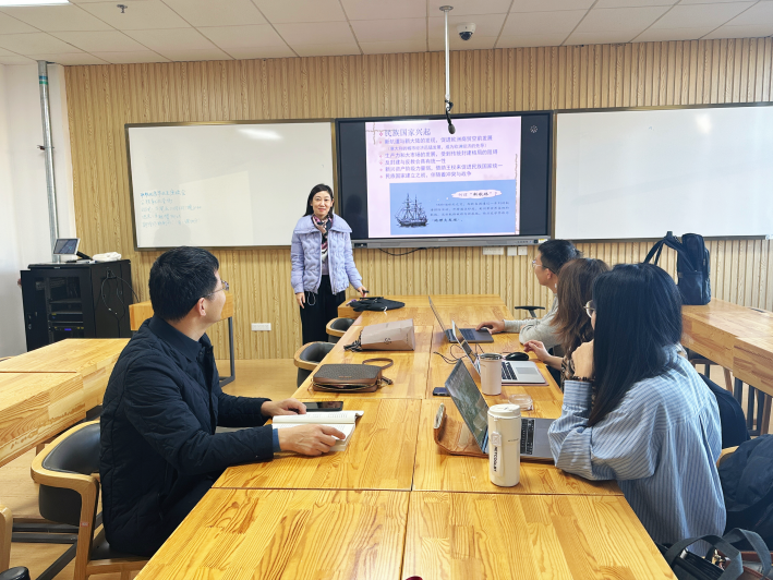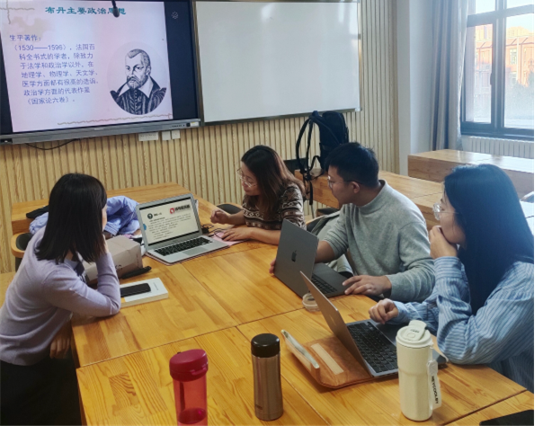 备课会上,石婧老师围绕其主讲课程《西方政治思想史》,讲授了“16世纪西欧政治思想”,以马基雅维利的权力政治观、共和理想和君主专制、君主的统治方法等内容为例,分享了个人教学心得。杨雪老师阐述了《外交学导论》《国际政治学概论》两门课程的教学目标、课程定位、基本内容,并以“中国特色大国外交”为题进行了精彩分享。刘桂英老师就《政治学原理》的课程性质、教材使用情况、内容体系设置、教学方法等做了详细梳理,并以“政治参与”一章为例,巧妙地运用人民网“领导留言板”等实际案例,逐步引导员工理解政治参与的概念、类型及功能。