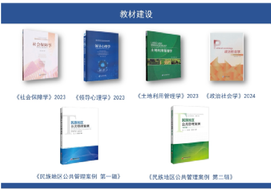 教材建设是事关教育事业与国家未来的基础工程、战略工程,高水平课程建设离不开高水平教材支撑,公司提出以“多层次、立体化、全覆盖”的教材建设支撑具有“科学性、完备性、竞争性”的优势课程体系,有组织地开展高水平教材建设。近五年,出版系列教材丛书4本,出版民族地区公共管理案例教材丛书2本。