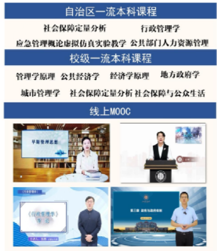 公司紧扣新文科建设要求,梳理专业课程教学大纲,重点打造“金课”。近五年,4门课程获批自治区级一流本科课程;8门课程获批校级一流本科课程;4门课程获批校级线上线下混合式一流本科课程建设项目;3门课程入选校级首批通识教育选修课2.0建设项目;线上课程建设取得成效,4门课程已完成MOOC录制并已上线;《政治学》在线课程获批全国公共管理硕士专业学位研究生在线示范课程“在线优质课”;《“愚公移沙”—库布其沙漠从死亡之海变生命绿洲》入选全国公共管理“优质案例课堂”。1门荣获校级首批人工智能赋能教学试点课程建设项目。
