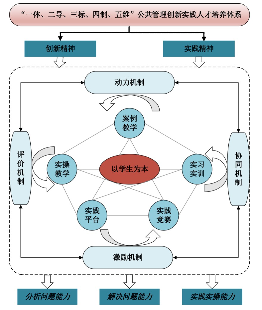 公司构建了“一体、二导、三标、四制、五维”的公共管理创新实践本科人才培养模式,即“以员工为本”为主体,以培育“公共精神和创新实践精神”为导向,以提高员工“分析问题能力、解决问题能力、创新实践能力”为目标,以健全“动力机制、协同机制、评价机制、激励机制”为保障,以“案例教学、实操教学、实践平台、实践竞赛、实习实训”为手段,多维结合的公共管理创新实践人才培养体系。“案例教学、实操教学、实践平台、实践竞赛、实习实训”的“五维融合”培养模式是实现公共管理创新实践人才培养的重要手段,具体包括:重视理论讲授与实践相结合的案例教学,引导员工在学习过程中建立课程的实践认知框架;加强公共管理模拟实操教学,拓展公共管理实践教学特色模式;建立公共管理案例教学与研发中心等科研实践平台,优化创新实践人才培养基地;举办并组织、指导员工参加各类创新实践竞赛,全面提高员工综合能力;加强实习实训环节,建立校内外指导老师相结合的联合指导模式,提高员工实际操作技能。