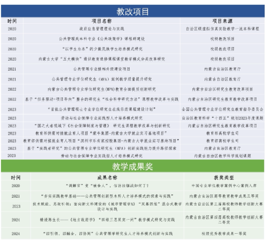近三年,公司获批国家级、自治区级教学改革项目10余项,多项校级教学改革项目。部分成果荣获自治区级高等公司产品成果奖三等奖、校级研究生高等公司产品成果奖一等奖等多项奖励。