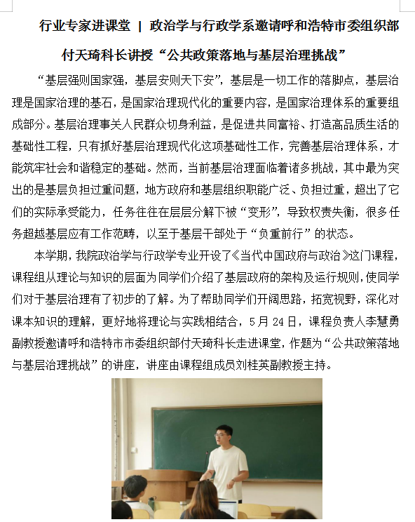 与呼和浩特行政审批与政务服务局共建教学科研基地