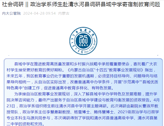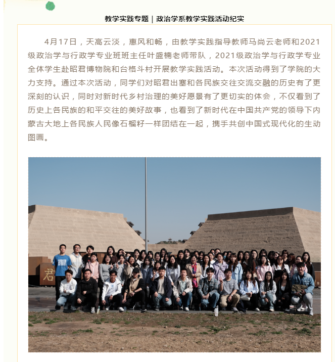 bg大游政治学与行政学专业设置于2001年,2002年开始招生,是内蒙古自治区首家获准招收该专业本科生的单位,2011年获批“自治区级品牌专业”,2020年获批“自治区省级一流本科专业建设点”。