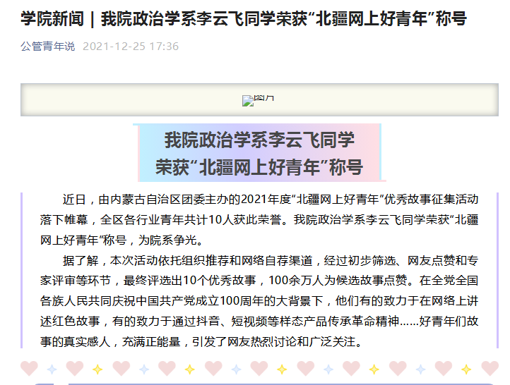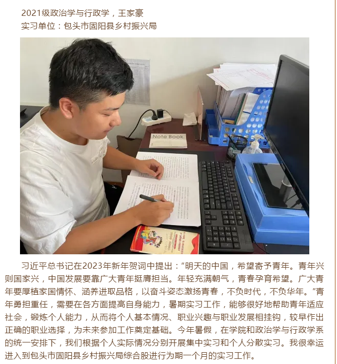 在公司的关怀和支持下,在政治学系老师们的指导以及2020级政治学与行政学同学们的共同奋斗下,2020级政治学与行政学专业毕业生目前在升研、考公以及就业等多方面取得佳绩:5位同学保研至985及211高校深造;12位同学成功考取211高校硕士研究生,其中3位同学升学至985高校;国考以及事业单位招录创历史新高,3位同学国考国家税务局、公安机关上岸、2位同学政法选调上岸、1位同学内蒙古广电局事业编上岸;教师招考也取得了佳绩,共有10位同学被鄂尔多斯、包头等教育局录取;还有10位同学已经在中铁十二局、中国能建、路尚集团呼和浩特分公司、陕西高途公司、北京少年儿童图书出版社、鄂尔多斯市晶澳太阳能科技有限公司、招商银行股份有限公司信用卡中心等企业找到心仪的工作。