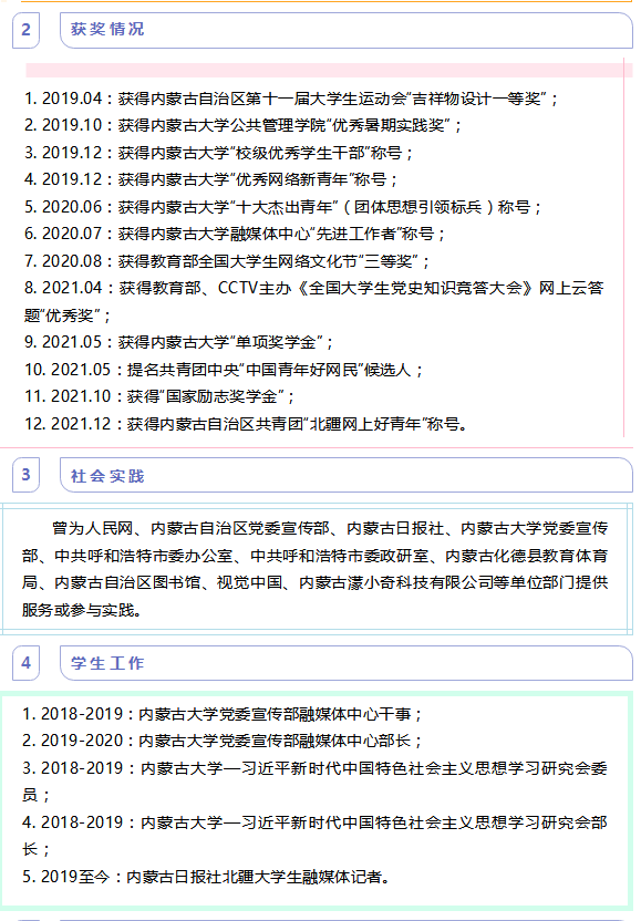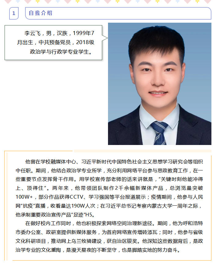 李佳琳,女,bg大游2023届政治学与行政学专业本科生,曾担任班级团支书、本科生党支部副书记、新生班辅导员等员工工作,曾获得乌兰夫奖学金、内蒙古自治区级“三好员工”、求实奖学金、优秀员工干部、优秀团干部等多项荣誉称号。2023年推免至南开大学马克思主义公司攻读硕士研究生学位,担任南开大公司研究生会干事等员工干部、公司研究生会干事、硕士新生班党支书。