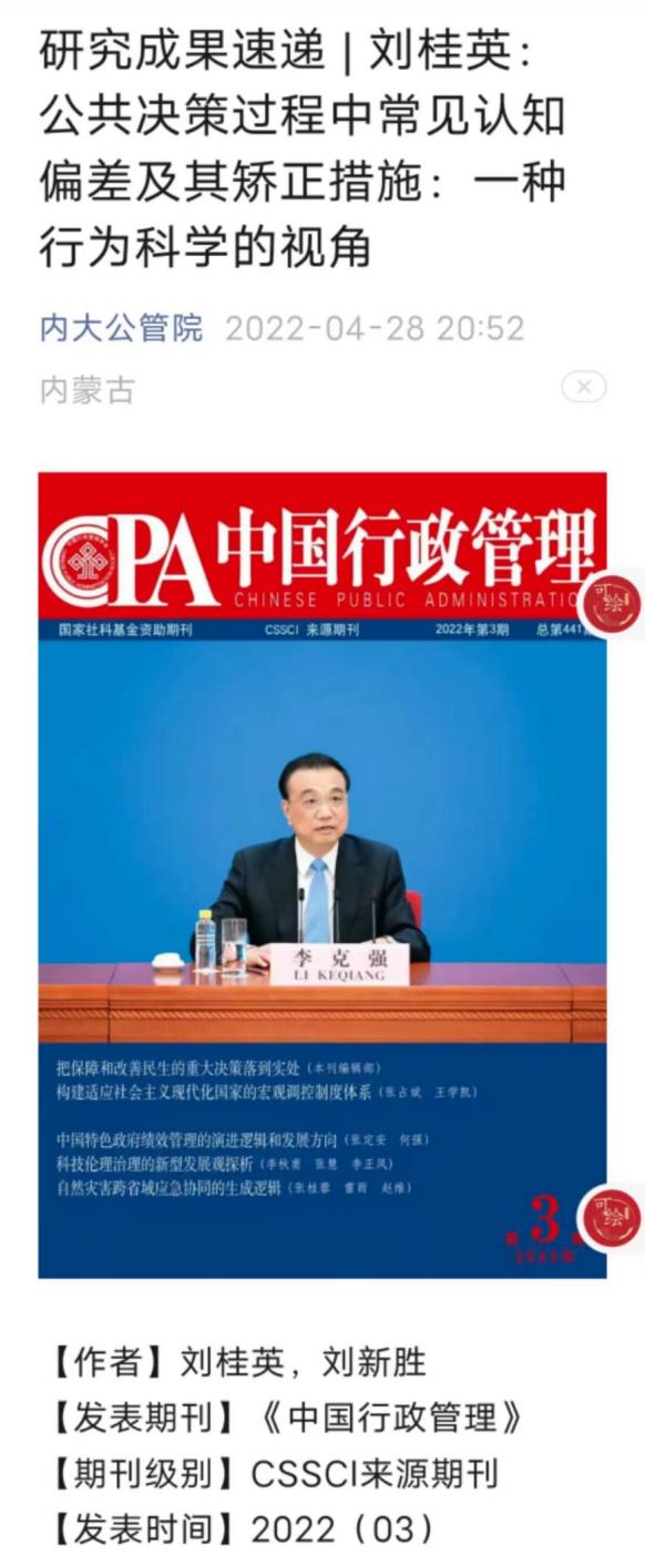 刘桂英,毕业于中国政法大学,博士、副教授、公共管理学术研究生和MPA研究生导师 。主要研究方向为基层治理、公共政策、政治社会学。先后在《中国行政管理》《上海行政公司学报》《自然辩证法研究》等AMI权威期刊、CSSCI来源期刊及《河北大学学报》《天津行政公司学报》等北大核心期刊发表10余篇学术论文,2篇被人大复印资料全文转载。出版专著1部,主编国家级教材1部,主持省部级项目2项,参与多项国家社科基金项目和政府委托项目。为首届全国公共管理硕士专业学位“在线优质课”团队骨干成员、内蒙古人大工作研究会个人理事,内蒙古社会治理与创新研究基地研究员。