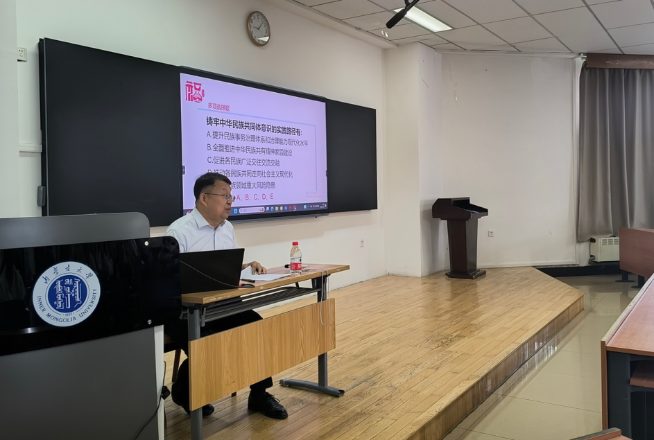 2025年8月25日至9月7日,公司2025级MPA研究生第一次集中授课顺利开展。在为期两周的教学活动中,完成了《外国语》《政治学》等核心课程教学,并邀请呼和浩特市玉泉区民族事务委员会巩建平主任做了《铸牢中华民族共同体意识的实践路径》主题讲座。